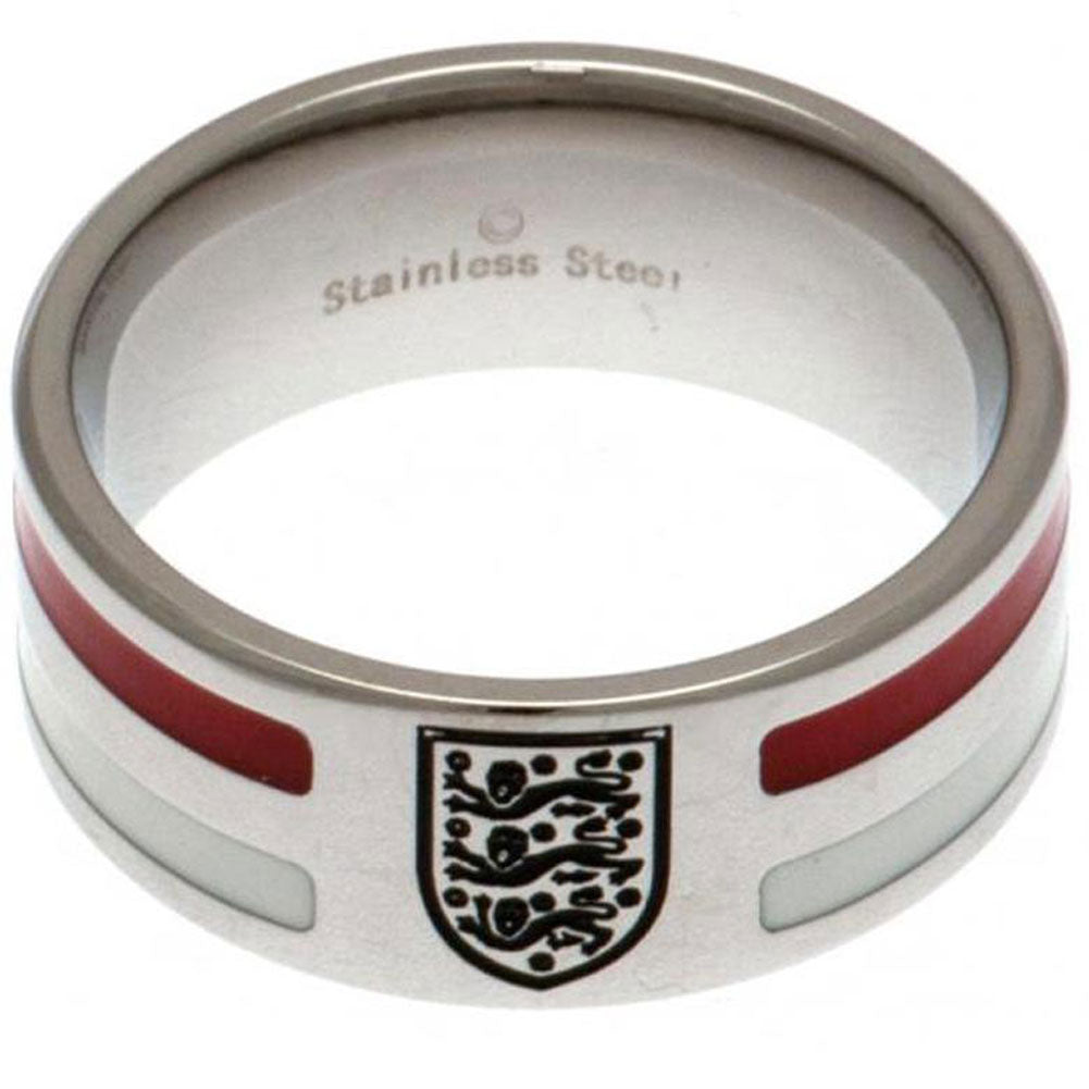 Stainless steel ring featuring red and white colour insertsChrome finish and engraved with the England crest