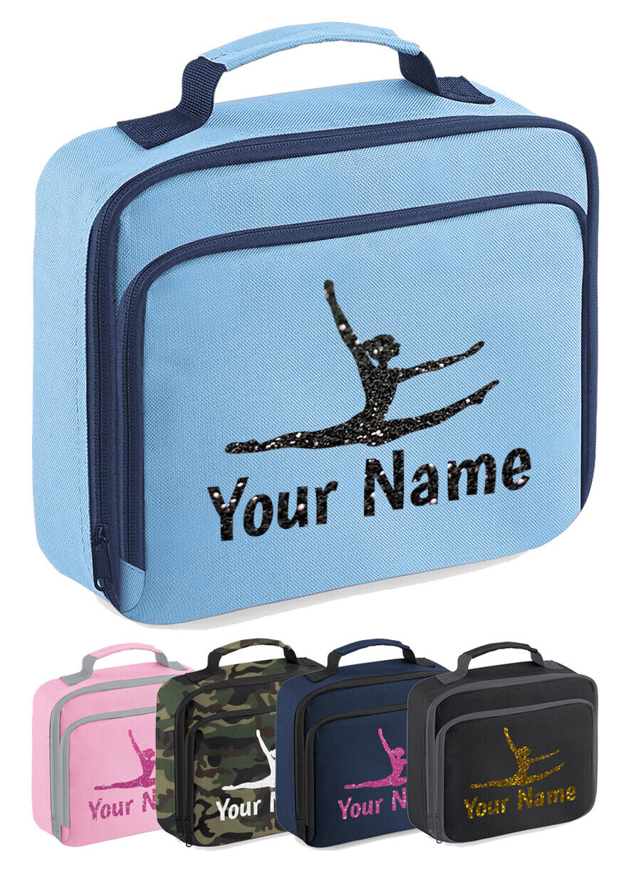 Girls Personalised Glitter Gymnastics School Lunch Bag Kids Dance Insulated Box