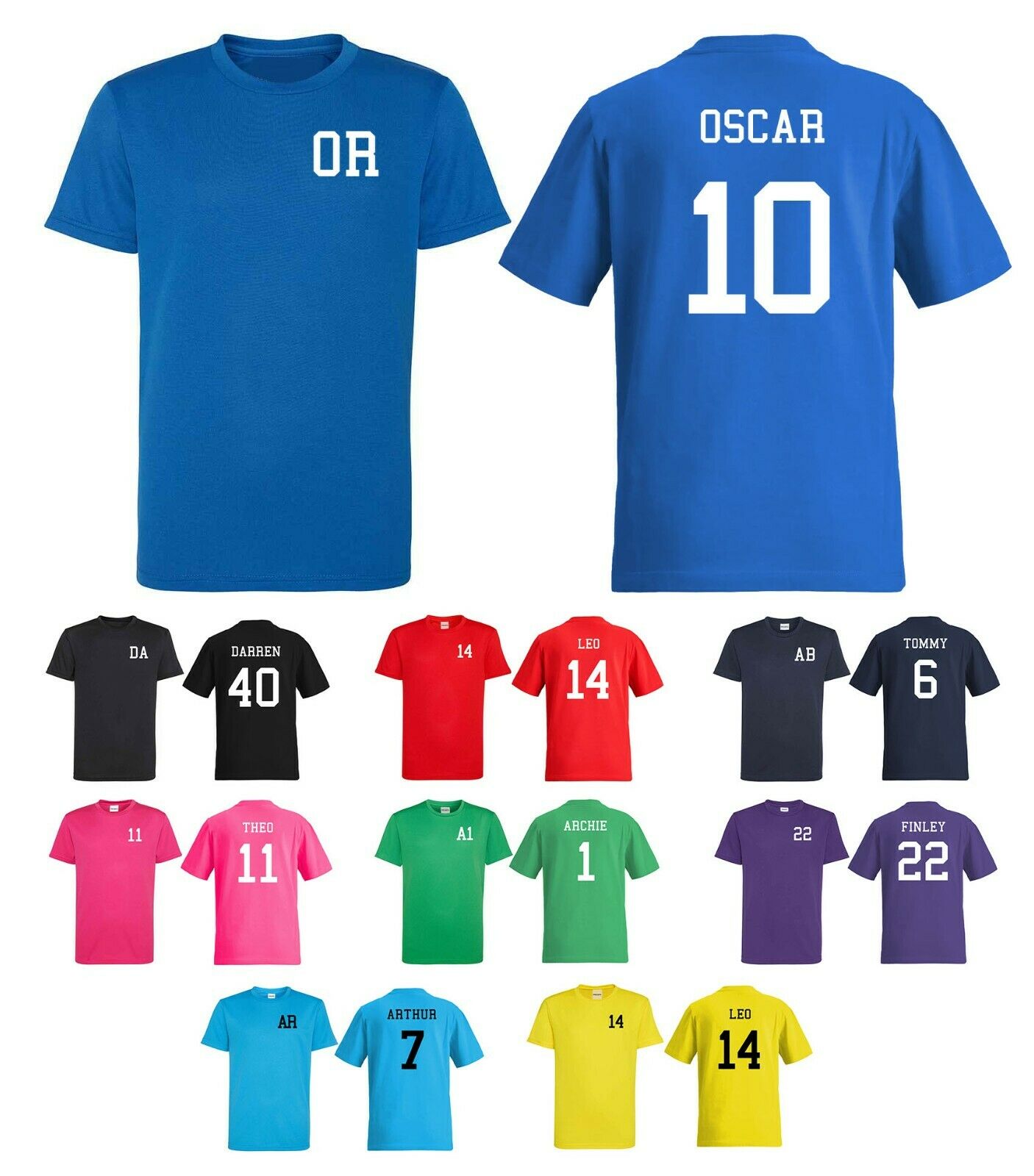Kids Personalised Sports T-Shirt Customised Printed Varsity Football Team Number