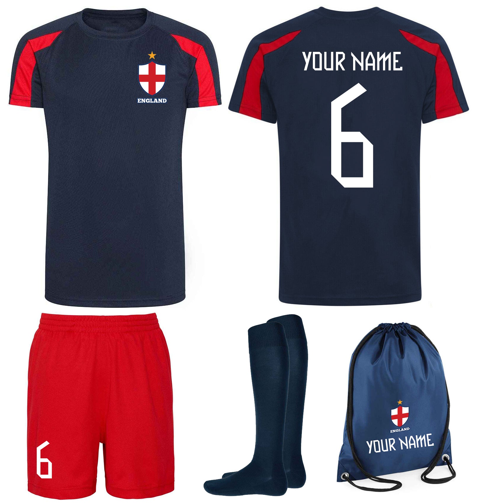 Personalised England Football Kit Customised Shirts Shorts Bags Kids Best Gift