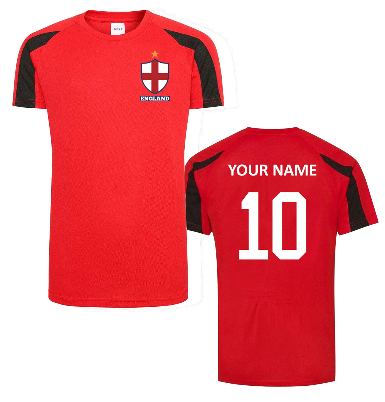 Children Personalised England Flag Badge Sports Football Shirts for Boys and Girls
