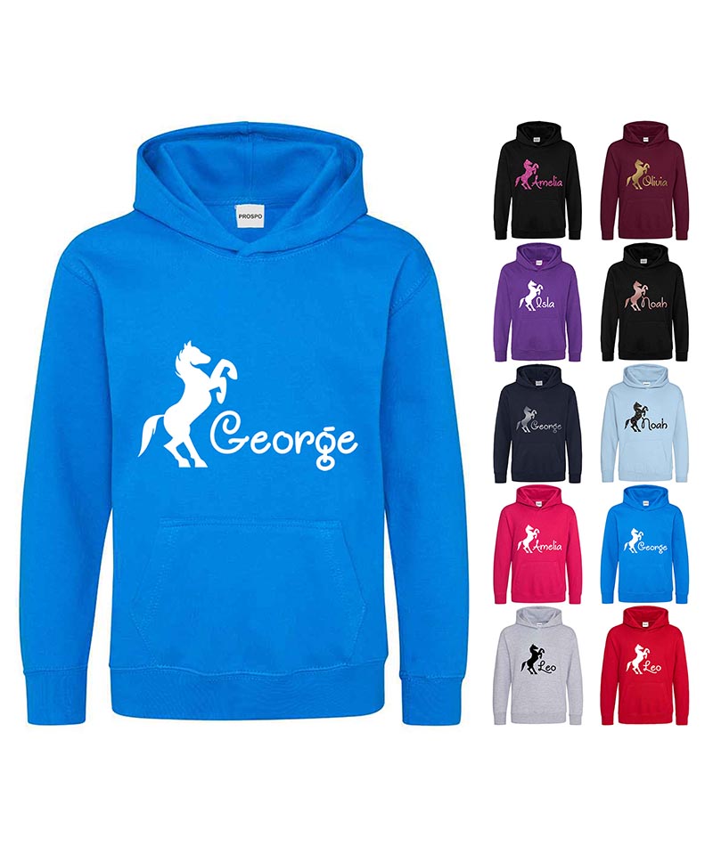 Personalised Equestrian Glitter Hoodie Custom Printed Name Girls Hoodies Jumper