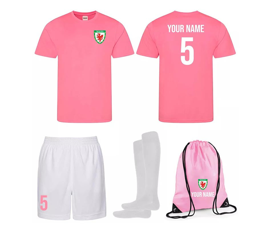 Personalised Wales Style Football Kits Custom Shirts Shorts Socks and Kit Bags