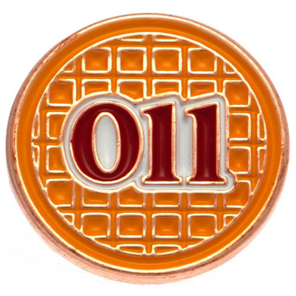 Bright, colourful and highly detailed enamel pin badgeFeatures an Eggo with 011 on a butterfly clasp fixing